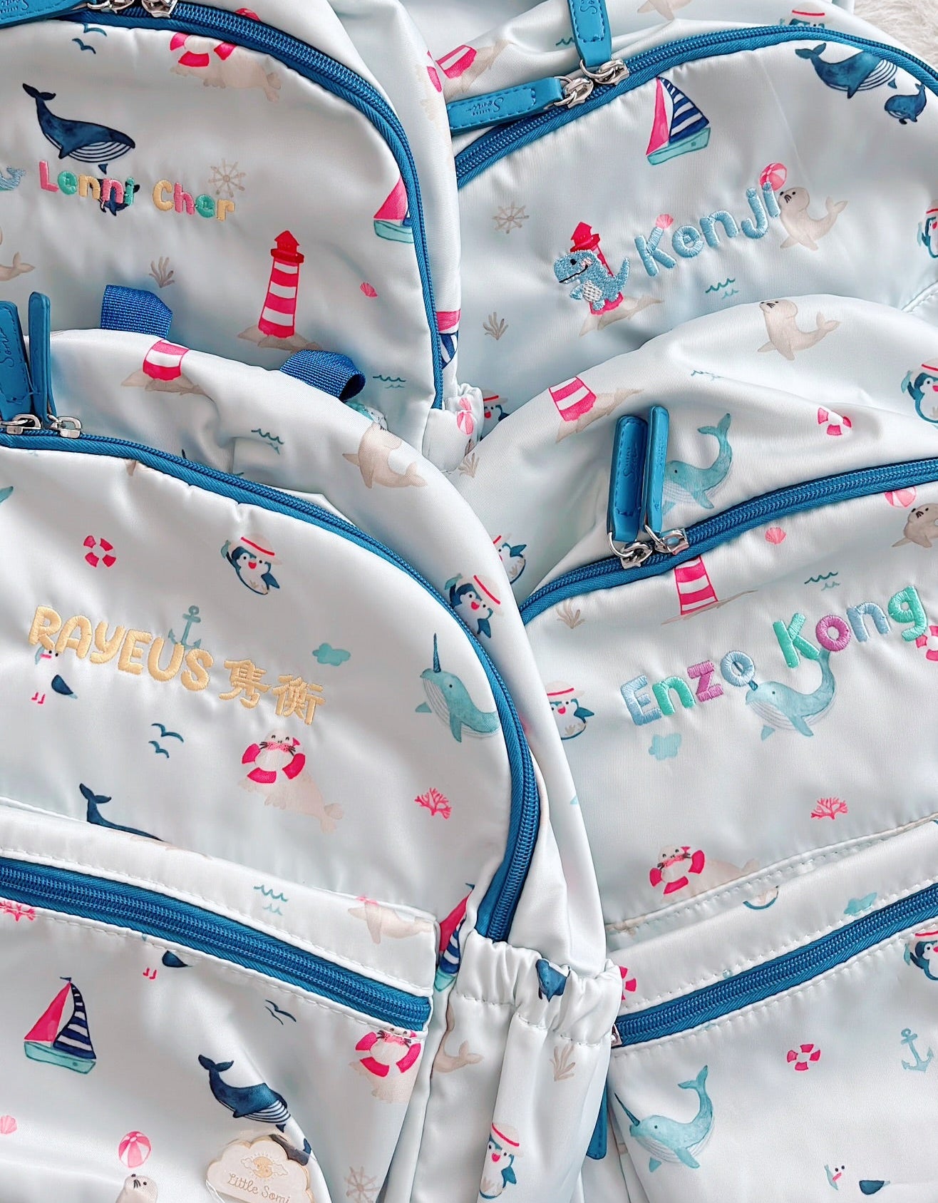 🌊⚓ Set sail on a sea of imagination with our Sailor Backpack...the perfect companion for every young adventurer! Featuring a playful crew of sailboat-riding narwhals, cheeky seagulls and curious seals, this nautical design brings the ocean to life. With bold red and blue hues, it’s made for fearless little sailors ready to explore the world..one adventure at a time. 🐋🚤🦭🌤️